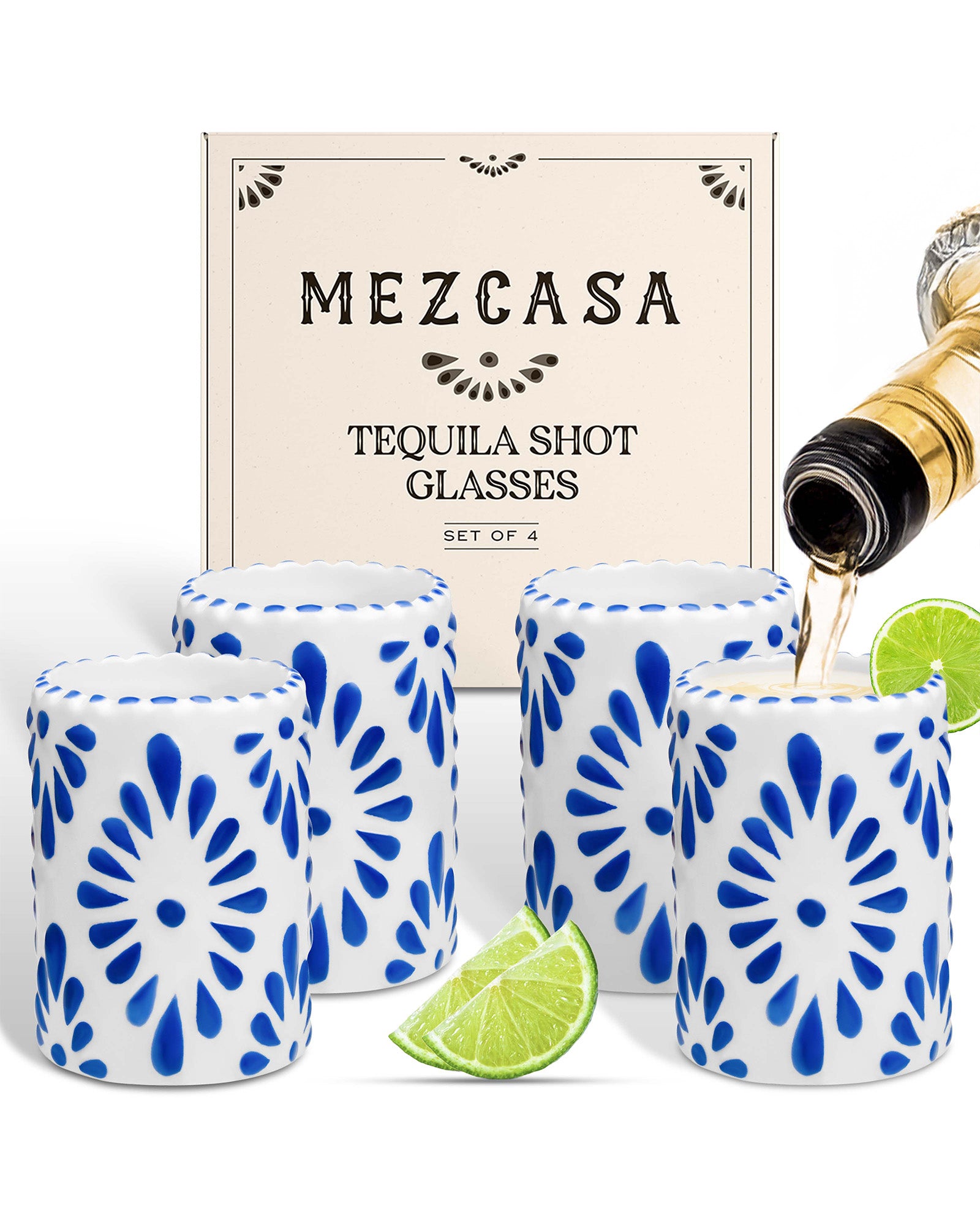 Mexican Talavera Artistry: Inspired by traditional talavera pottery, these hand-painted white and blue shot glasses feature intricate patterns and bold colors that capture the vibrant spirit of mexico. Perfect for adding a festive touch to tequila rituals, mezcal tastings, or lively Cinco de Mayo fiestas.